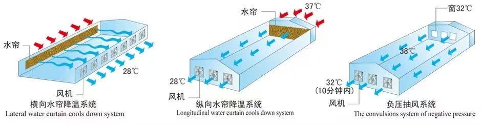 El extractor de aire y la almohadilla de enfriamiento se instalarán en la pared opuesta, la gran presión negativa, el aire caliente se extraerá fuera del invernadero/granja avícola, la almohadilla de enfriamiento se evaporará y entrará cada vez más aire frío. Por lo tanto, será una mejor función de enfriamiento.